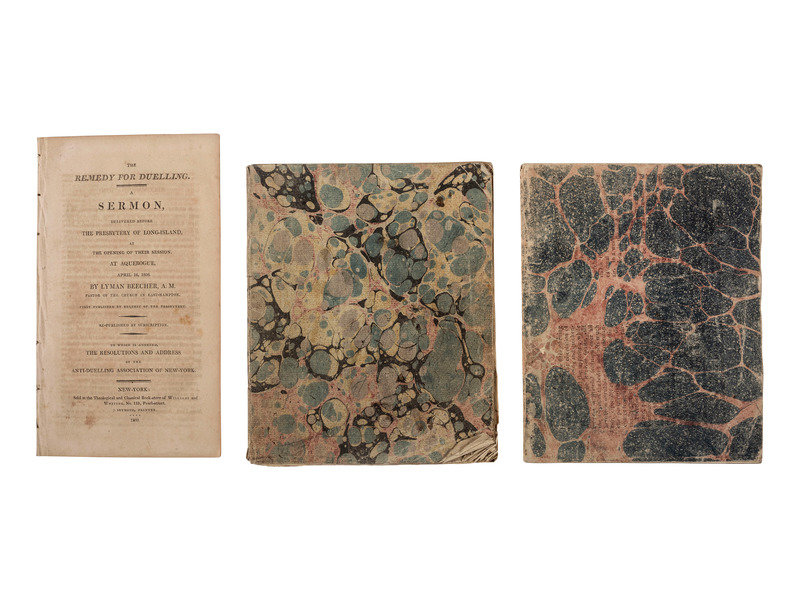 [With:] BEECHER, Lyman (1775-1863). The Remedy for Duelling. A Sermon. New York: J. Seymour, 1809. 8vo. (Offsetting, some toning.) Disbound. A pamphlet, re-published by subscription, penned by Lyman Beecher, father to Harriet Beecher Stowe and Henry Ward Beecher.
