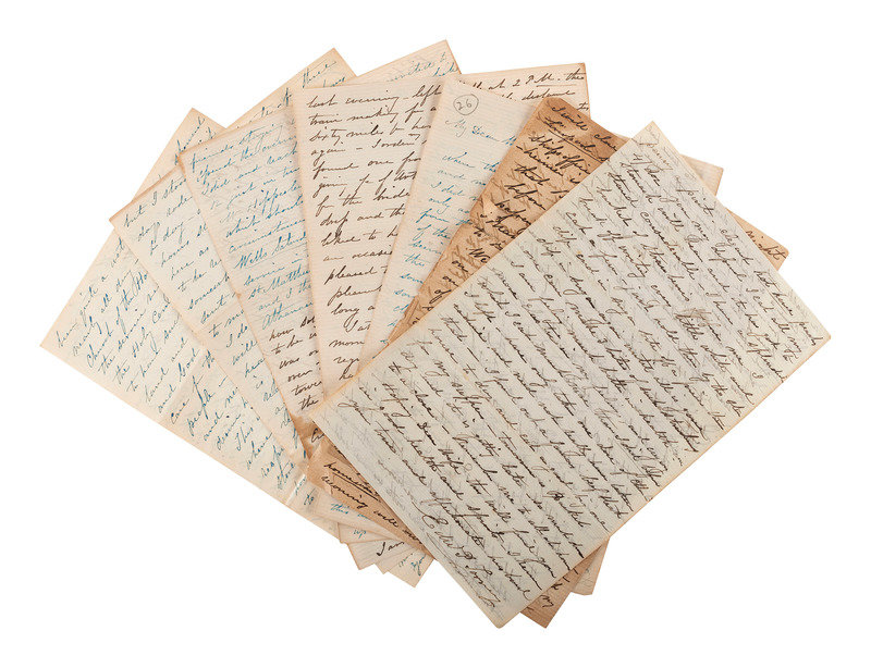 TORREY, Edward P. Archive of approximately 27 letters to his wife from his travels to Europe. Various places, 16 June-28 September 1867. Approximately 207 pages, 8vo, some on hotel stationary, occasional brown spotting, old creases, light wear to edges, housed in embossed leather portfolio.