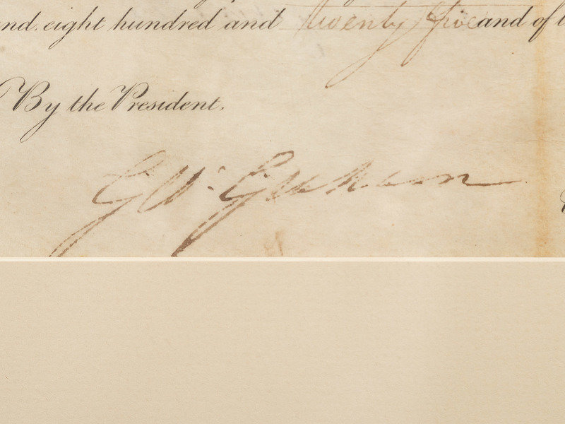 ADAMS, John Quincy (1767-1848). Partly-printed land document signed "(J.Q. Adams"). [Washignton, D.C.], 13 September 1825.