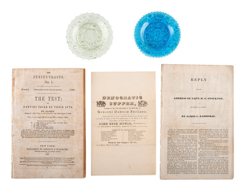 [POLITICS IN AMERICA]. A group of pamphlets, glass plates, and other ephemera related to Andrew Jackson, Henry Clay, and American politics of the 1840s, comprising: