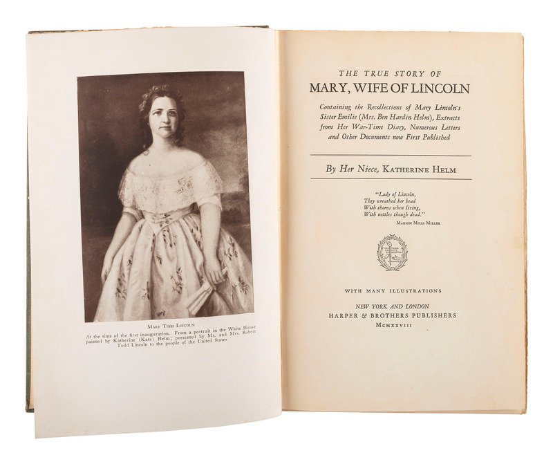 [LINCOLN, Abraham (1809-1865)]. HELM, Katherine. The True Story of Mary, Wife of Lincoln. New York and London: Harper & Brothers, 1928.