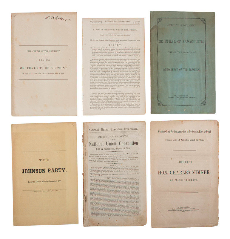 JOHNSON, Andrew (1808-1875). A group of pamphlets and ephemera related to the presidency and impeachment of Andrew Johnson, comprising:
