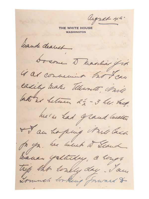 ROOSEVELT, Eleanor (1884-1962). Autograph letter signed ("E.R."), to Maude Livingston Hall Gray. Washington, D.C., 4 August [1935].