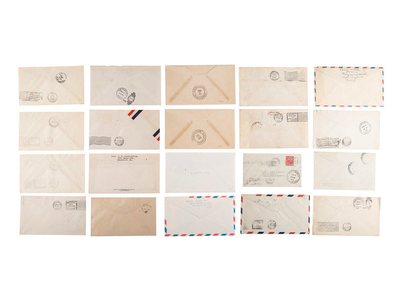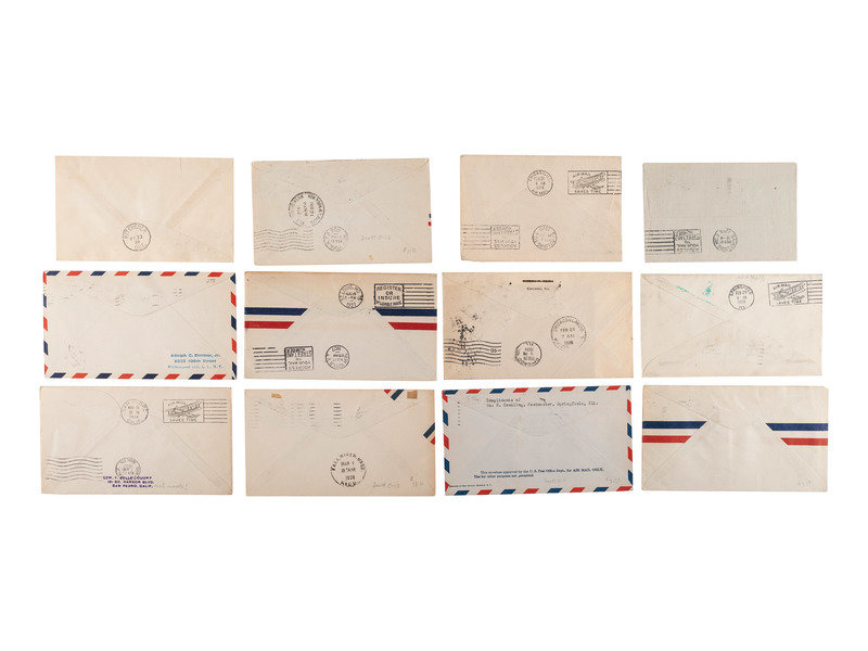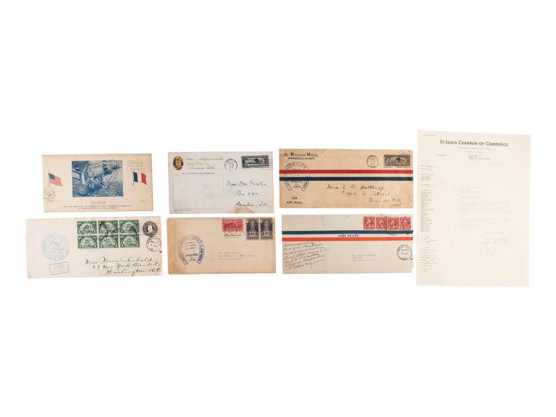One cover with ink stamp of Spirit of St. Louis and “Special Flight Lindbergh Day” has manuscript pencil note at top “Good Will & Dedication Cover.” These have many different postmarks: Chicago, IL; Springfield; St. Louis; Peoria; South Milwaukee, WI.