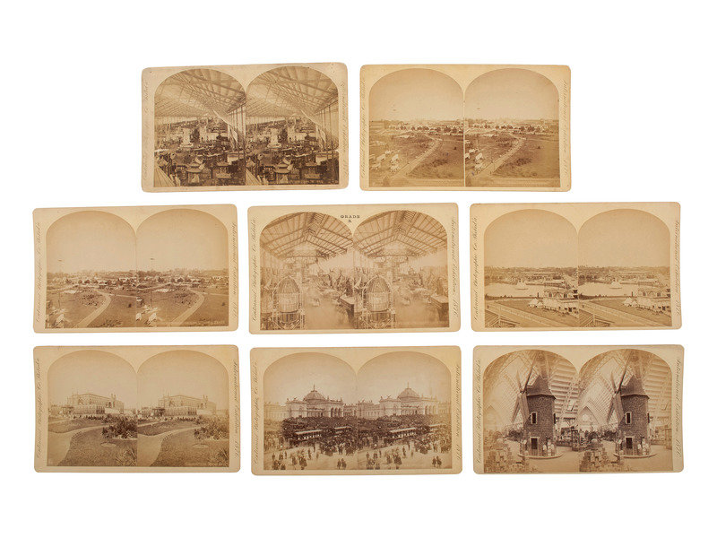 [Also with:] 8 stereoviews on cardstock mounts from the 1876 Centennial Exposition (toning, some spotting, wear to mount edges and corners), all measuring approx. 7 x 4 ¼ in. Each with "International Exposition, 1876" on right of mount recto and "Centennial Photographhic Co. Philad'a" on left of mount recto. On back of four of the cards is written neatly in pen: "John Meigs / Sep 23 ’76 / 25 cts." Included are inside and outside views of the Centennial: 1) Centennial Opening – The Orations 2) Horticultural Hall 3) Gov’t Building – Looking South 4) Lake from Machinery Hall 5) Centennial Grounds Looking East 6) Old Time Wind Mill Agr’l. Hall 7) Centennial Grounds 8) Building – General View from West End.