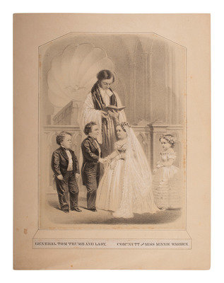 Lithograph: “Mr. & Mrs. General Tom thumb. [Chas. S. Stratton.] New York: Benj. W. Hitchcock, Publisher, 1863. 10 x 11-3/4”. (moderate overall browning)