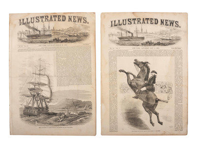 Pen and ink sketch of rabbit "Harvey," 3 x 5 in. Signed James Stewart. -- ALS, signed Billy Ireland (1880-1935), Columbus, OH, 7 April 1920. On Columbus Dispatch letterhead. Addressed to Andy, accompanied by memorial card from Ireland's funeral. The letter describes a small fire in his couch caused by a spark from the wood-burning fireplace. He writes that he is enclosing a bill for the repair of the cushion. Below this is what may be a self-portrait running with a bucket of water with "No extra charge for services of fire fighting brigade." A native of Chillicothe, Ohio, Billy Ireland was a cartoonist at the Columbus Dispatch for 37 years.