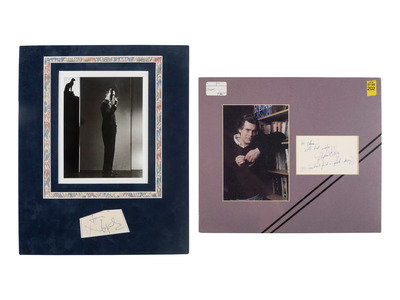 [Also with:] King, Stephen (b. 1947). Signed card with "For Thom / with best wishes / Stephen King / (PS Couldn't find a photo - Sorry)." Matted with a printed image of King, 2.5 x 4.5 in. visible. Shrink wrapped on foam core board. Not opened for examination. -- TLS, boldly signed by James Thurber (1894-1961), cartoonist and humorist, to an aspiring writer. Paget East, Bermuda, June 5, 1954. This 1-1/2 page missive gives advice to the writer including books to read and how to make a living as a writer. He tells Mr. Webb to get a job as a newspaper writer, "The more you write, the better you should get, although Johnny Jones of the Columbus Dispatch writes as badly now as he did thirty-five years ago, and he's been at it that long." An interesting take on the writing art. -- An Inaugural Commemorative Keepsake. The Thurber Center Opening December 1992. One of 250 portfolios with six 5 x 13 in. cards, each representing the work of an author and signed by them. The first is by Literary Director, Michael J. Rosen, and the five authors are: Edward Albee, Russell Baker, Ann Beattie, Roy Blount, Jr. and Frederick Busch. Like new. -- Clipped signature of Noel Coward (1899-1973), playwright, actor, director. Approx. 1.5 x 3.25 in. Matted with photograph of Coward to approx. 12.5 x 15.5 in. and shrink-wrapped on foam core. Not opened for examination.