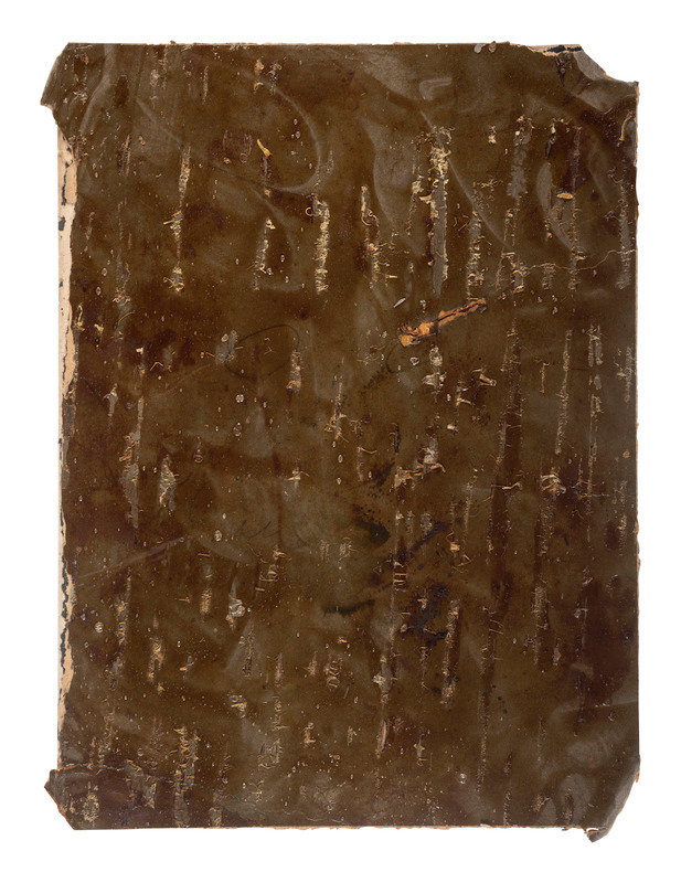 6 x 8 in. silver gelatin photograph on cardstock mount (toned, short puncture, brown stains; mount trimmed and with losses at corners, heavy adhesive residue to mount verso).
