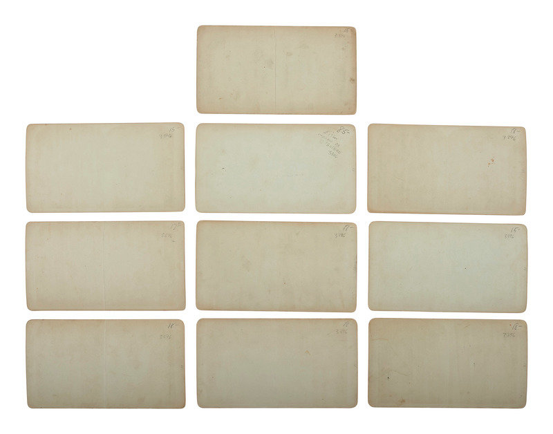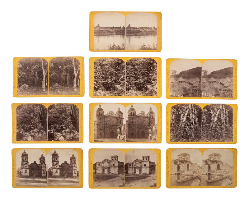 6 x 3 5/8 in. stereoviews on cardstock mounts (toning, few prints have faded; edge and corner wear to mounts, light soiling, few with vertical crease through center of mount). Rectos with series title "Darien Expedition. Commodore Selfridge, Commanding," publisher's imprint, and title in lower margin. A scarce group of images, either taken by John Moran or Timothy O'Sullivan, ca 1870-1871.