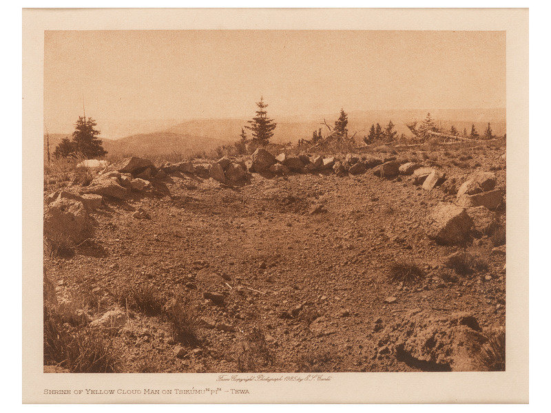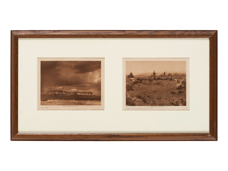 Corn Mountain. -- Shrine of Yellow Cloud Man on Tsikúmu pi - Tewa. -- Together, 2 photogravures matted and framed together, both portfolio 17, copyright 1925, each image 188 x 138 mm, on Holland van Gelder (per Andrew Smith Gallery label), not examined out of frame. Provenance: Andrew Smith Gallery (certificate of authenticity/label affixed to backing paper).