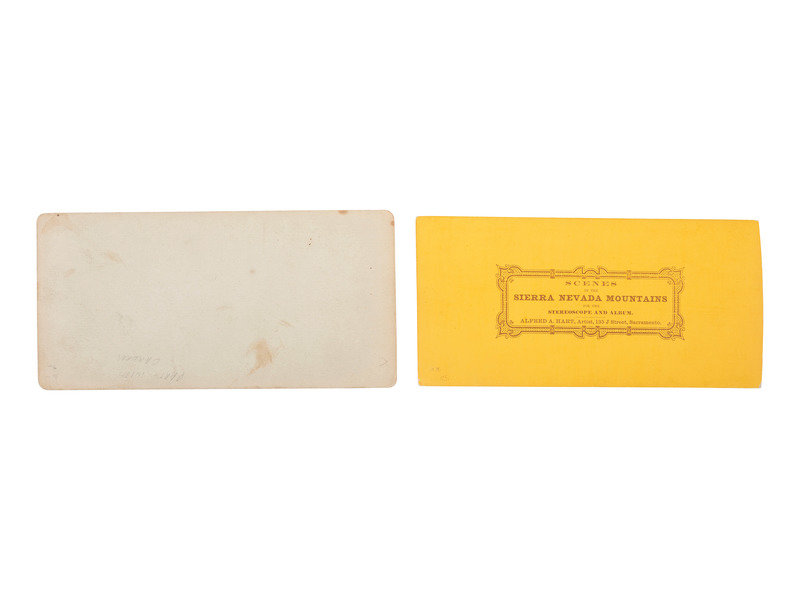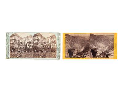 [With:] Outdoor view of a mining camp with railway. Marysville, CA: E. Nesemann, n.d. 6 1/16 x 3 1/4 in. albumen stereoview on orange cardstock mount (minor wear to mount edges). Imprint and series title "Views of American Scenery" printed to recto.