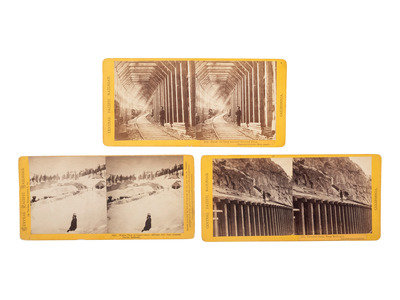 [WESTERN AMERICANA]. HART & HOUSEWORTH, photographers. A group of 3 stereoviews of railroad snow sheds and a snowy scene.