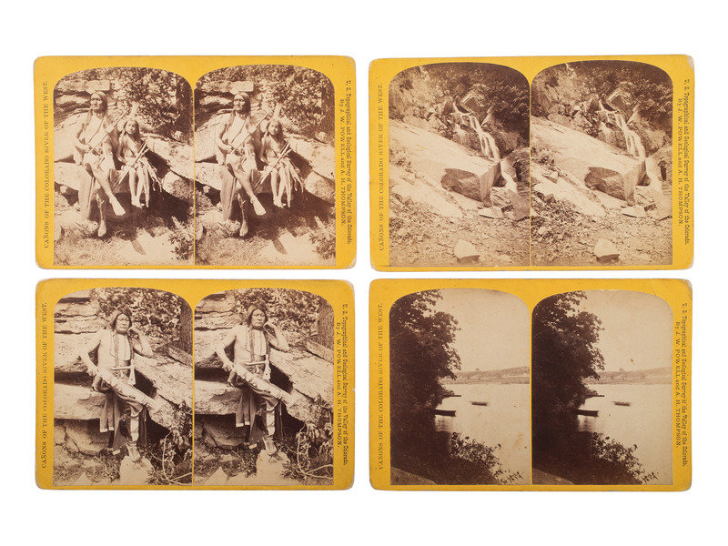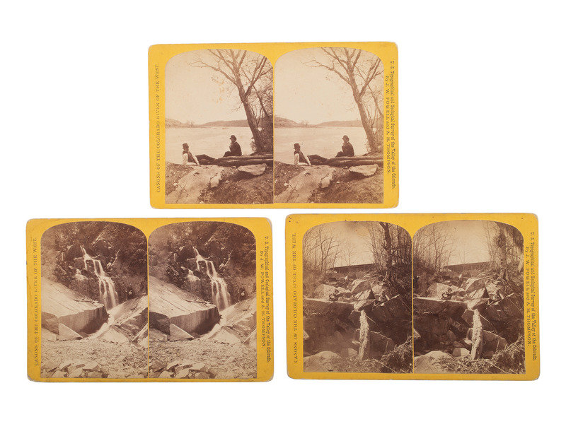 6 x 4 1/4 in., or smaller, stereoviews on cardstock mounts (occasional spotting and some soiling to prints; some edge and corner wear to mounts). Although rectos feature the series title "Canons of the Colorado River of the West" and "US Topographical and Geological Survey of the Valley of the Colorado, by J.W. Powell and A.H. Thompson" imprint, the subject matter does not relate to the information on the mounts.