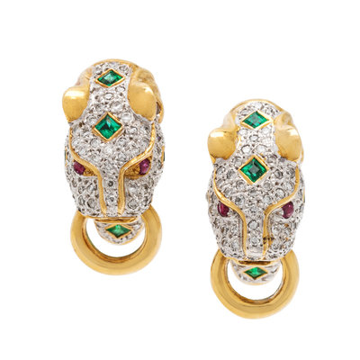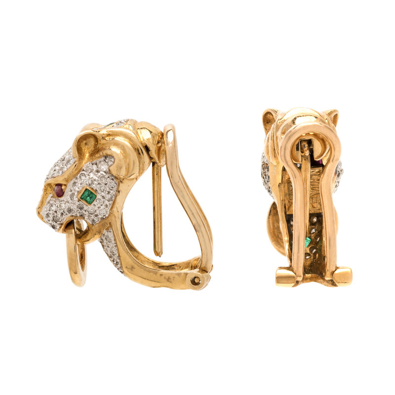 LEVIAN, DIAMOND AND GEMSTONE PANTHER EARCLIPS
