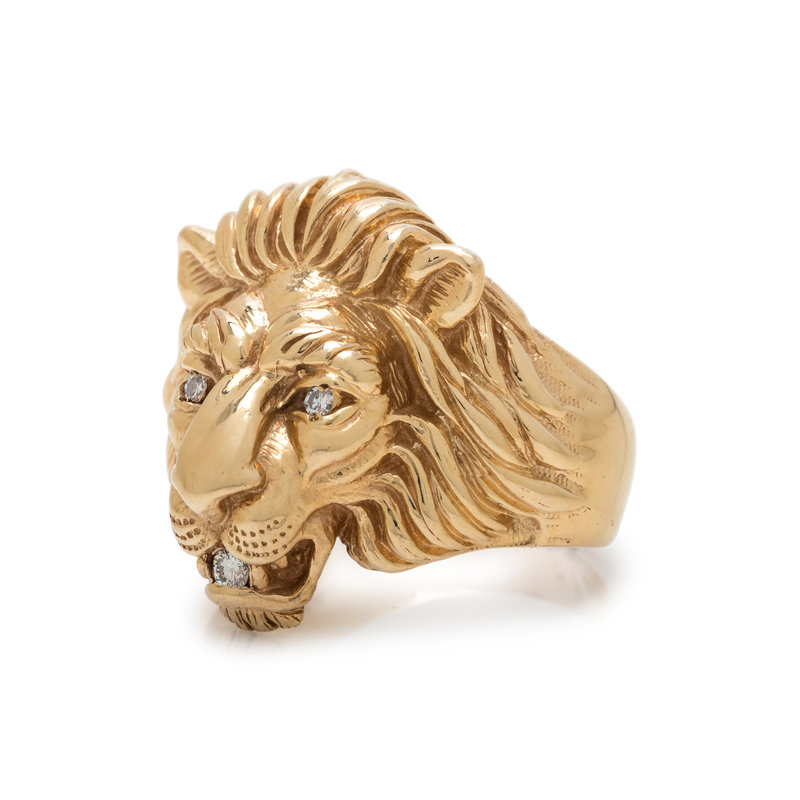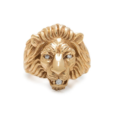 YELLOW GOLD AND DIAMOND LION RING
