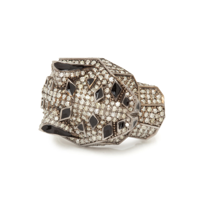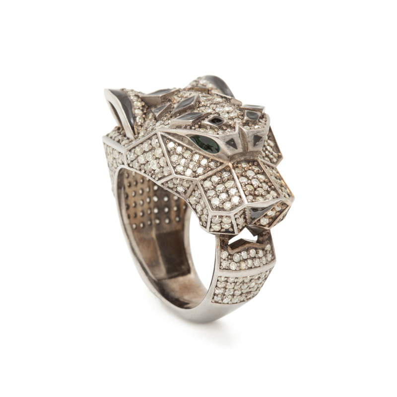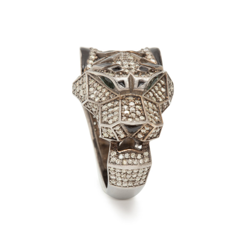 DIAMOND AND ENAMEL PANTHER RING