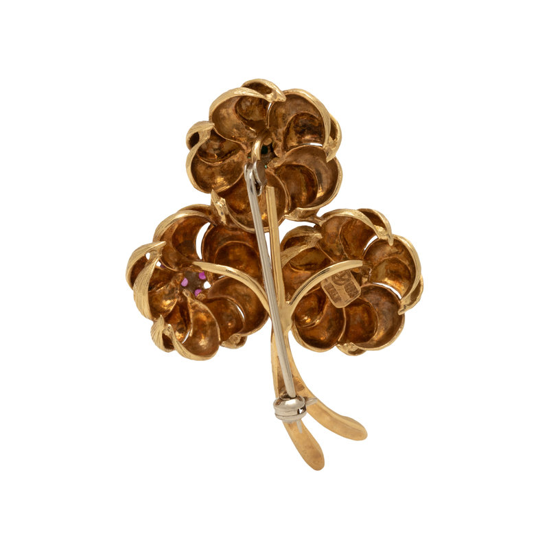 YELLOW GOLD AND MULTIGEM FLOWER BROOCH