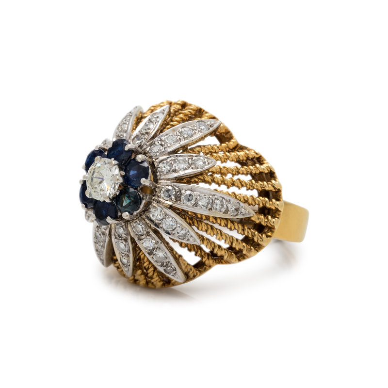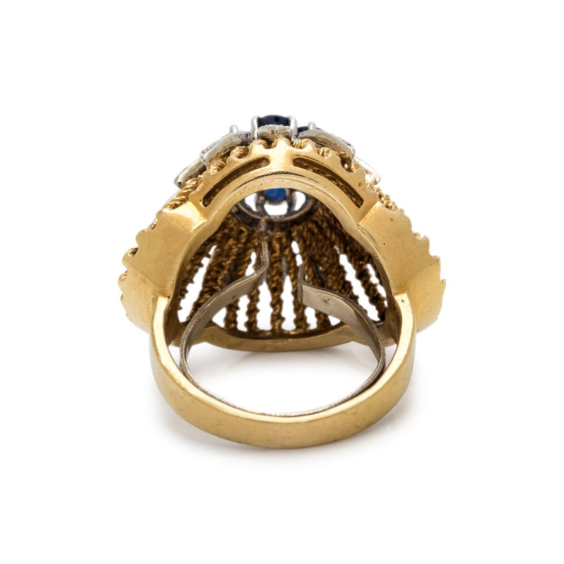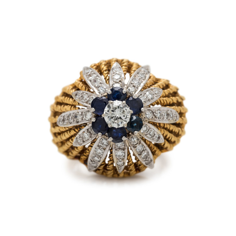 BICOLOR GOLD, DIAMOND AND SAPPHIRE RING