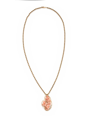 YELLOW GOLD, CORAL AND DIAMOND PENDANT/NECKLACE
