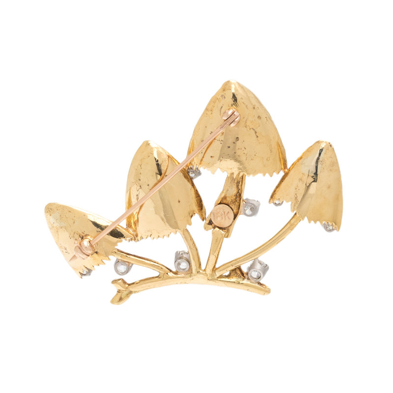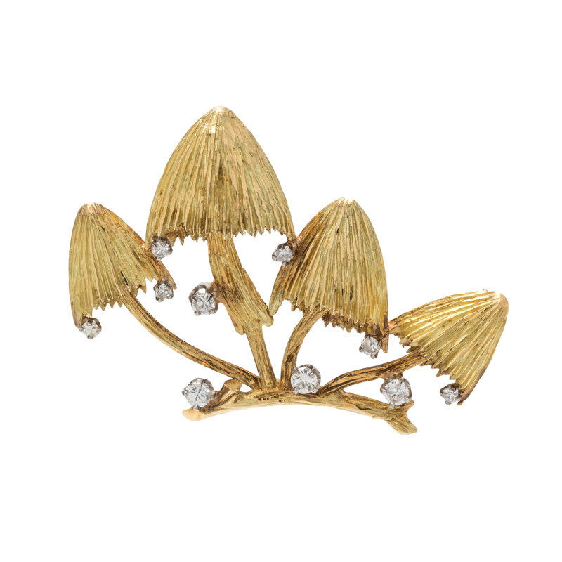 YELLOW GOLD AND DIAMOND MUSHROOM BROOCH