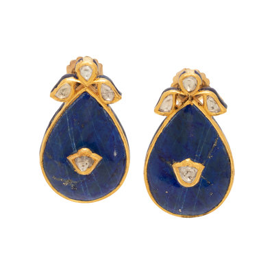 LAPIS LAZULI, DIAMOND AND ENAMEL EARRINGS