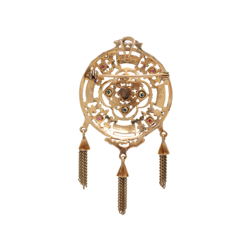 GEMSTONE AND ENAMEL PENDANT/BROOCH