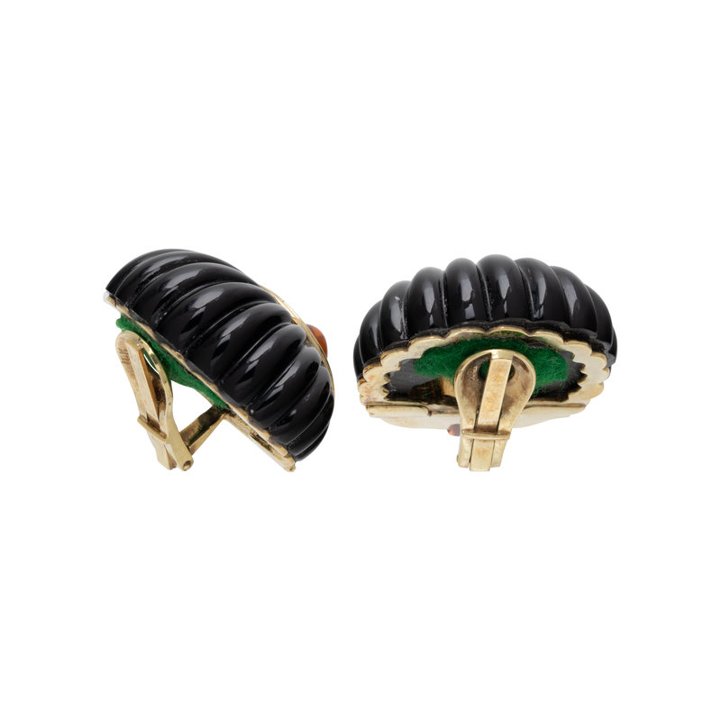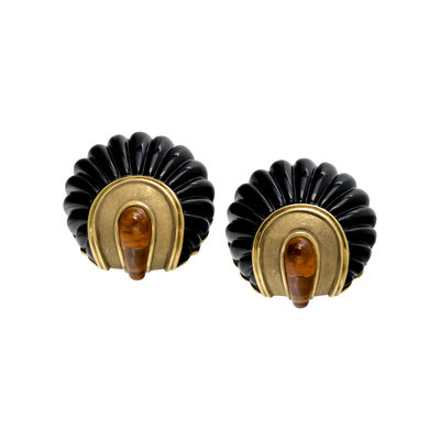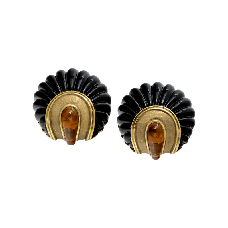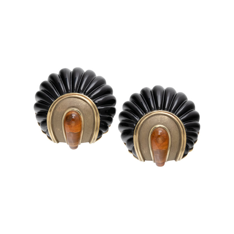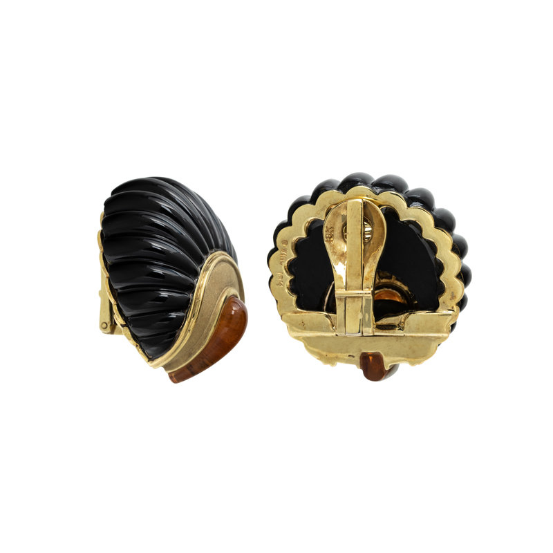 WINC, YELLOW GOLD, ONYX AND CITRINE EARCLIPS