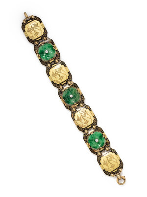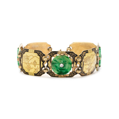YELLOW GOLD, ENAMEL, JADE AND DIAMOND BRACELET