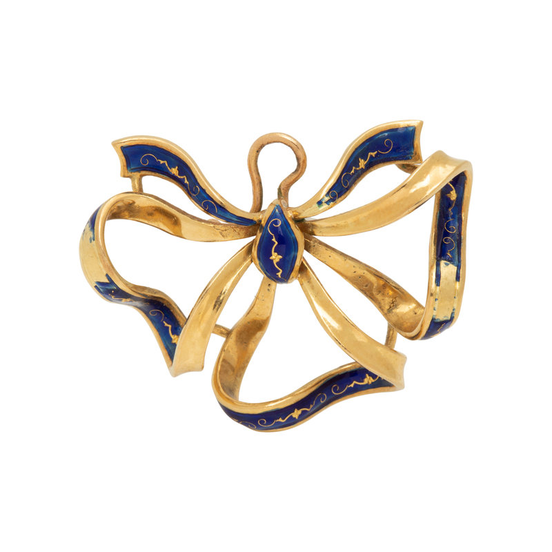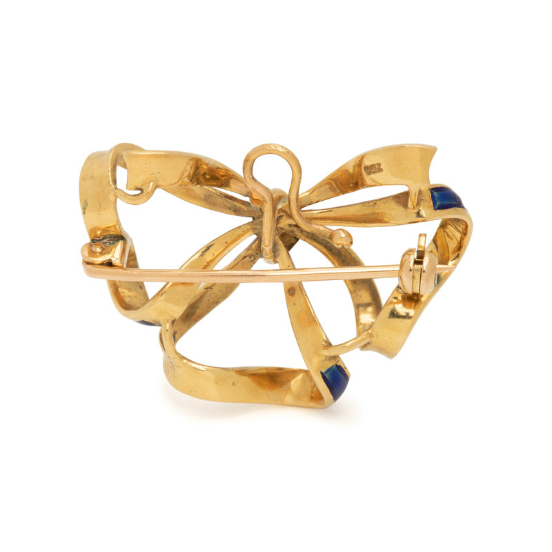 YELLOW GOLD AND ENAMEL BOW BROOCH