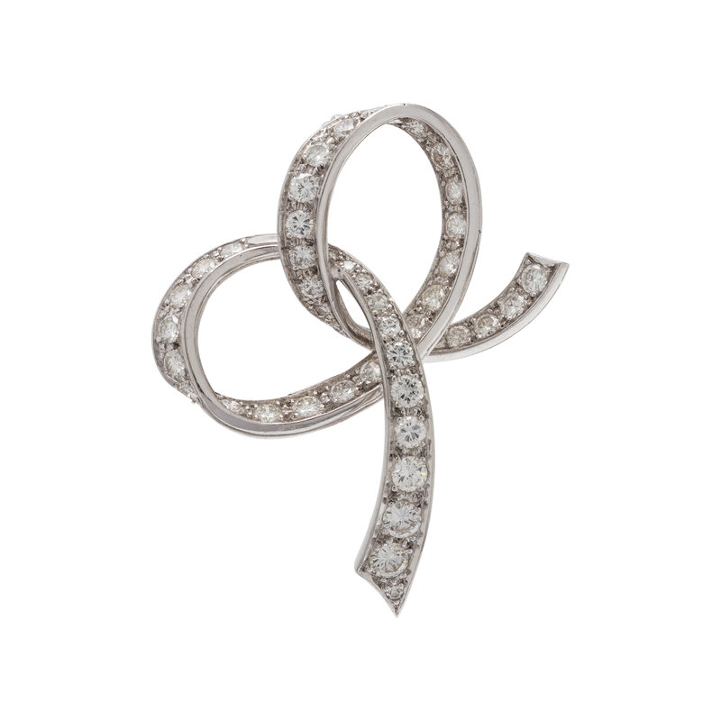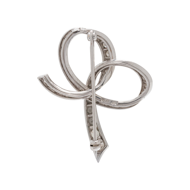 Containing 43 round brilliant cut diamonds weighing approximately 2.15 carats total. Mounted in platinum. 1 5/8 x 1 3/8 inches.