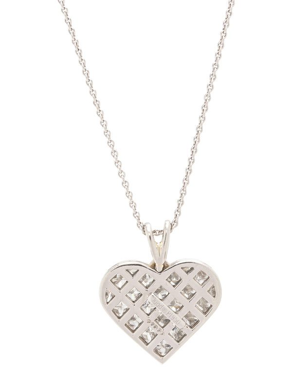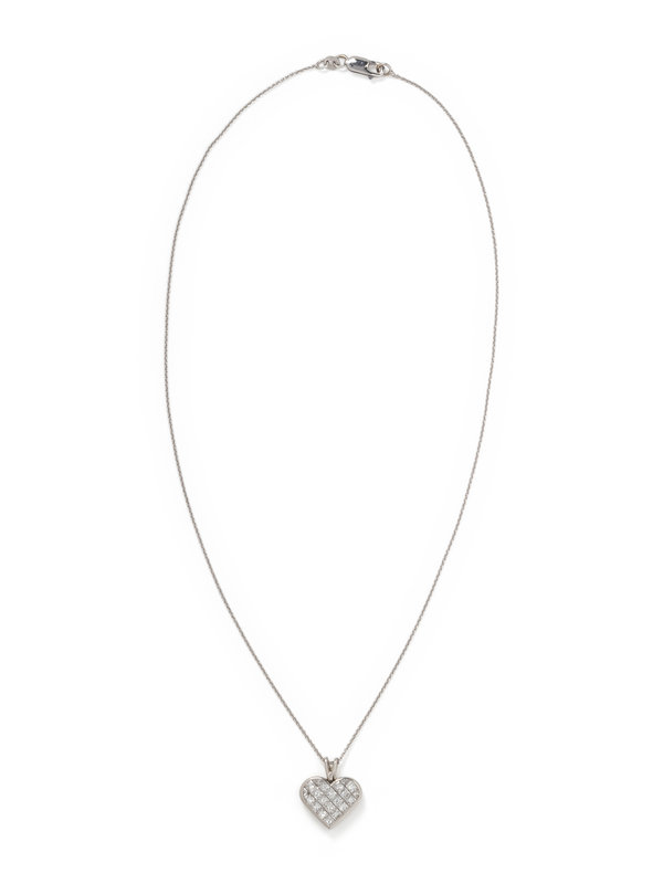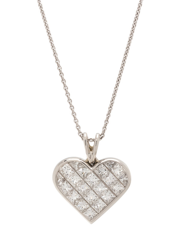 Containing 17 princess and four triangular cut diamonds weighing approximately 2.45 carats total. Mounted in platinum and white gold. 18 inches long.