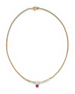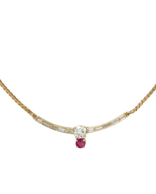 YELLOW GOLD, DIAMOND AND SYNTHETIC RUBY NECKLACE