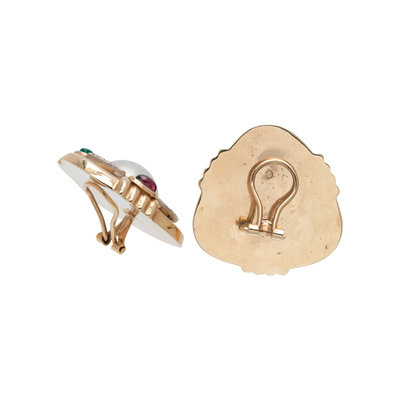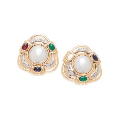 YELLOW GOLD, MULTIGEM AND DIAMOND EARCLIPS