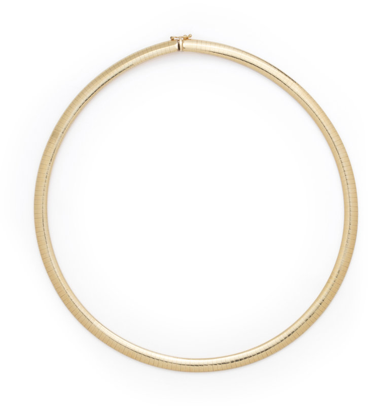 Consisting of an omega link chain measuring approximately 5.00 mm wide. 17 inches long.
