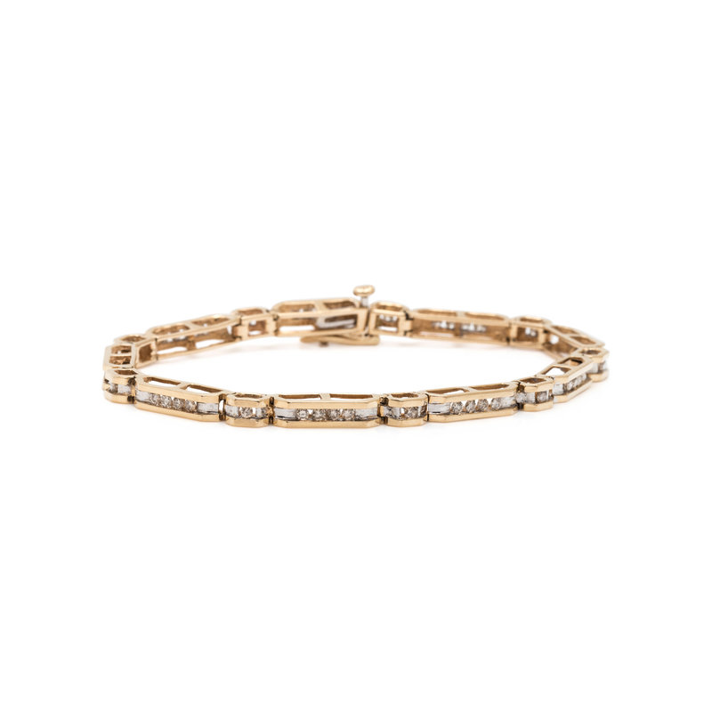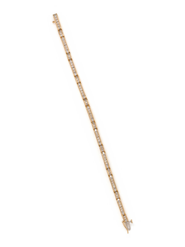 Containing 44 round brilliant cut diamonds weighing approximately 0.85 carat total. 6 3/4 inches long.