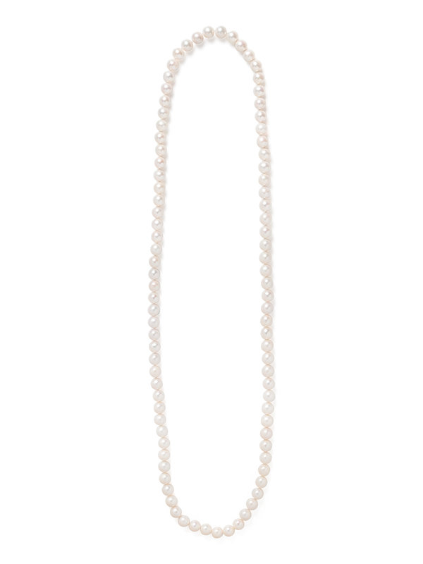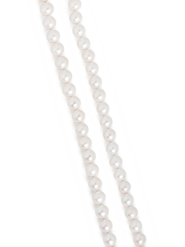 Containing pearls measuring approximately 11.35-12.30 mm in diameter, strung knotted in an endless style. 44 inches long.