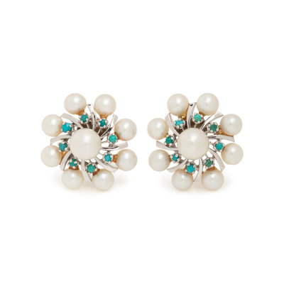 CULTURED PEARL AND TURQUOISE EARCLIPS
