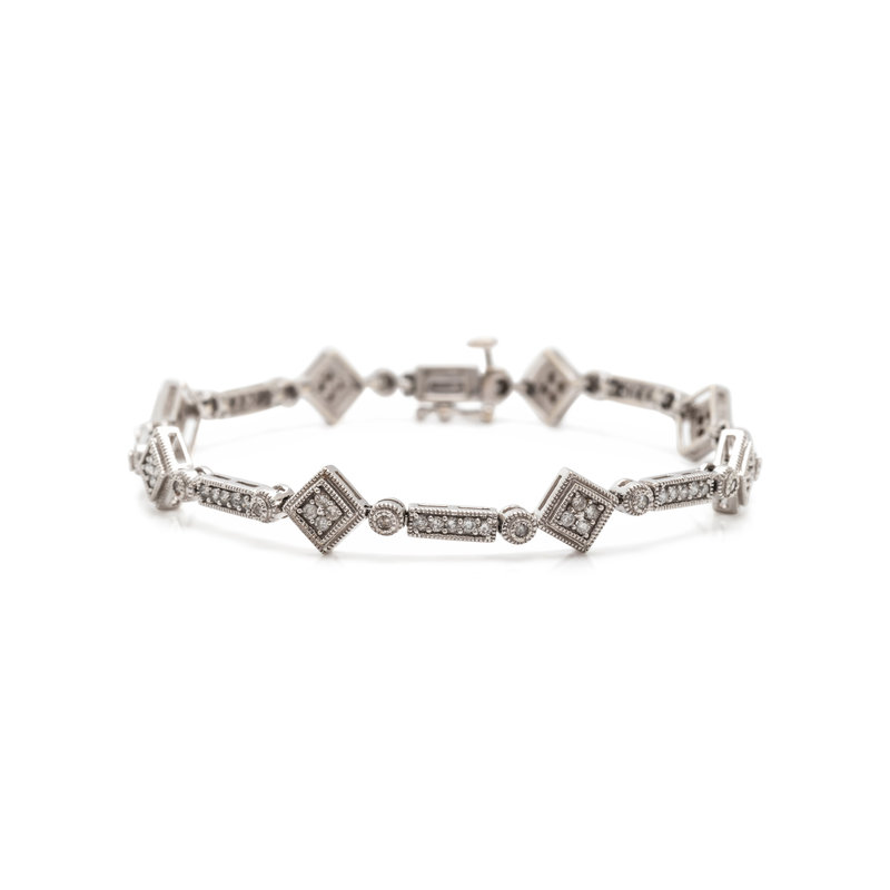 Containing 88 round brilliant cut diamonds weighing approximately 1.05 carats total. 7 inches long.