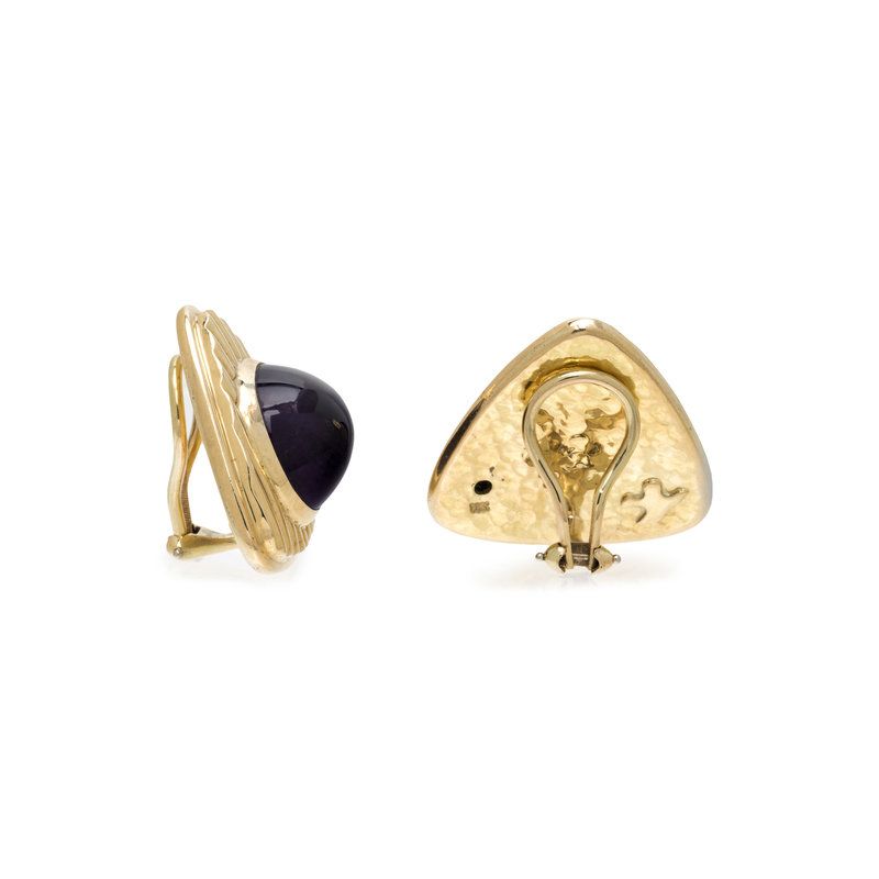 SUSAN BERMAN, YELLOW GOLD AND AMETHYST EARCLIPS