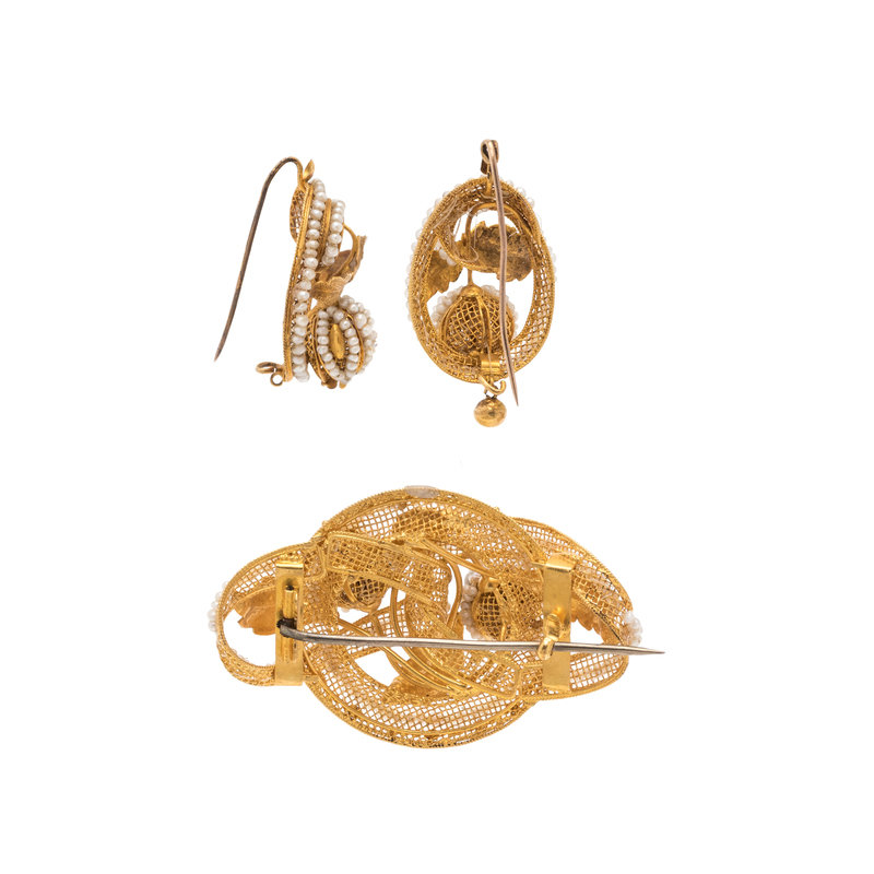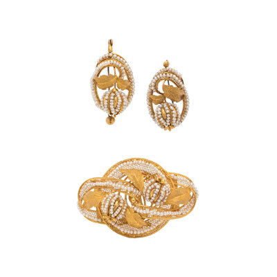 VICTORIAN, YELLOW GOLD AND SEED PEARL SET