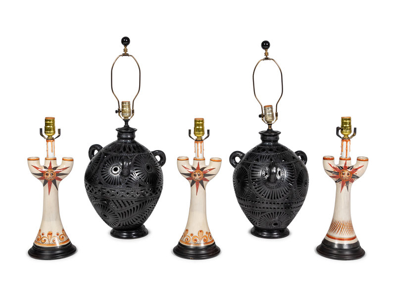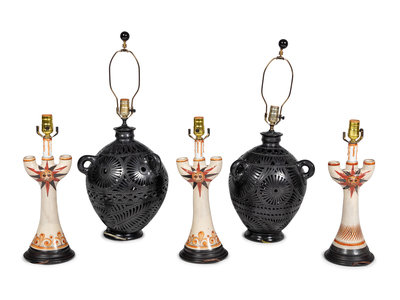 A Group of Mexican Pottery Lamps