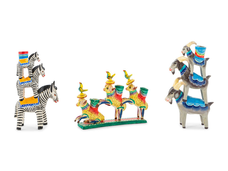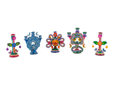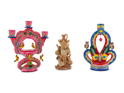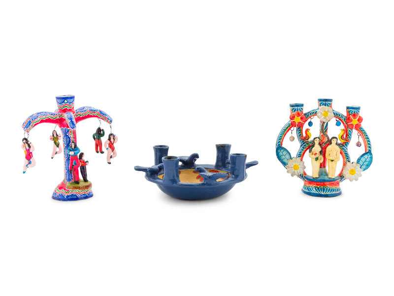 A Collection of Mexican Pottery Candelabra