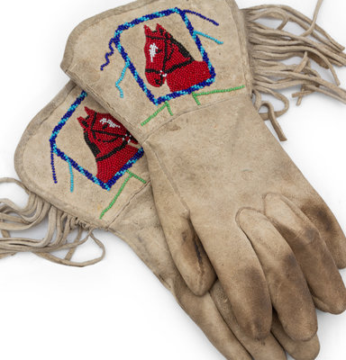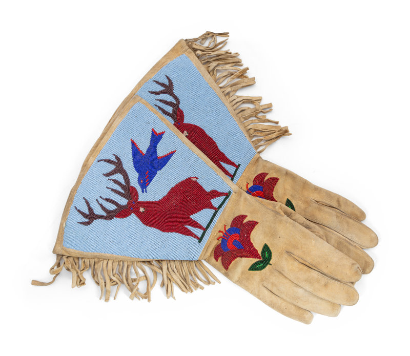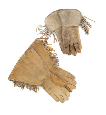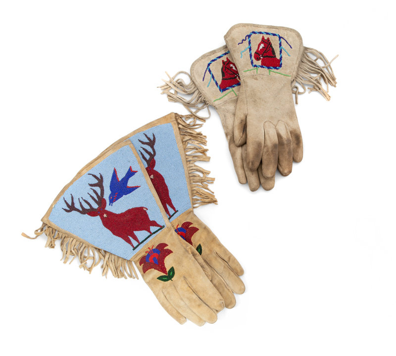 Two Pairs of Plateau Beaded Hide Gauntlets