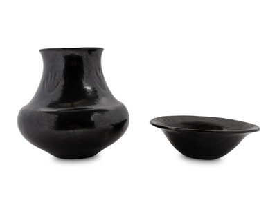 A Pair of Santa Clara Pueblo Blackware Pottery Items