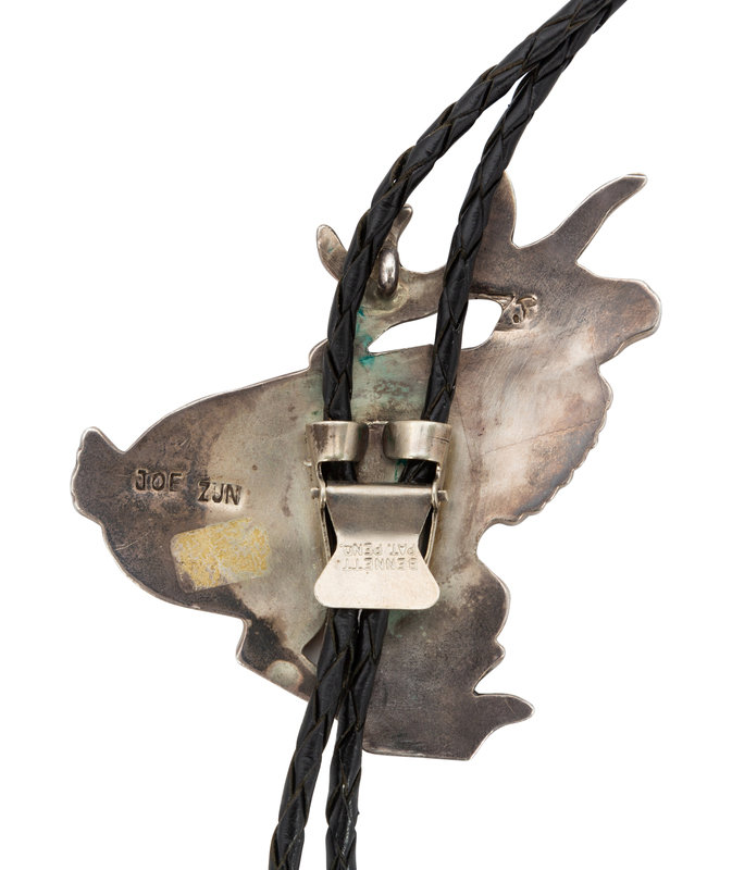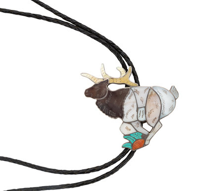 An Inlaid Silver Elk Bolo Tie by Joe Zun