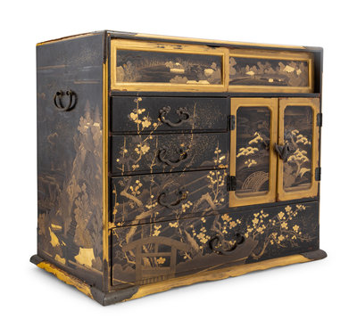 A Japanese Black and Gilt Decorated Table Cabinet, Kodanshu