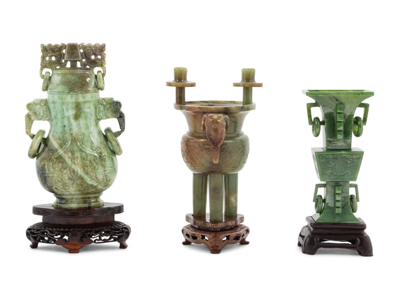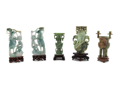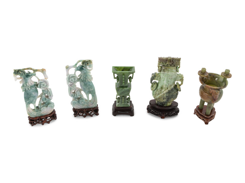 Five Chinese Spinach Jade and Hardstone Vessels