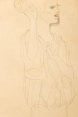 Untitled (Standing, forearms raised, facing right)