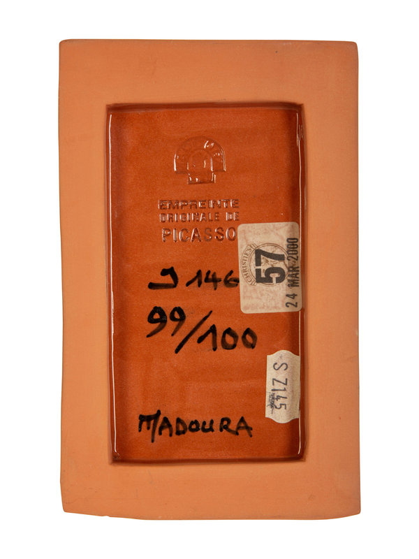 inscribed J146, Madoura, and numbered 99/100, bearing the Empreinte Originale de Picasso and Madoura stamps (verso)